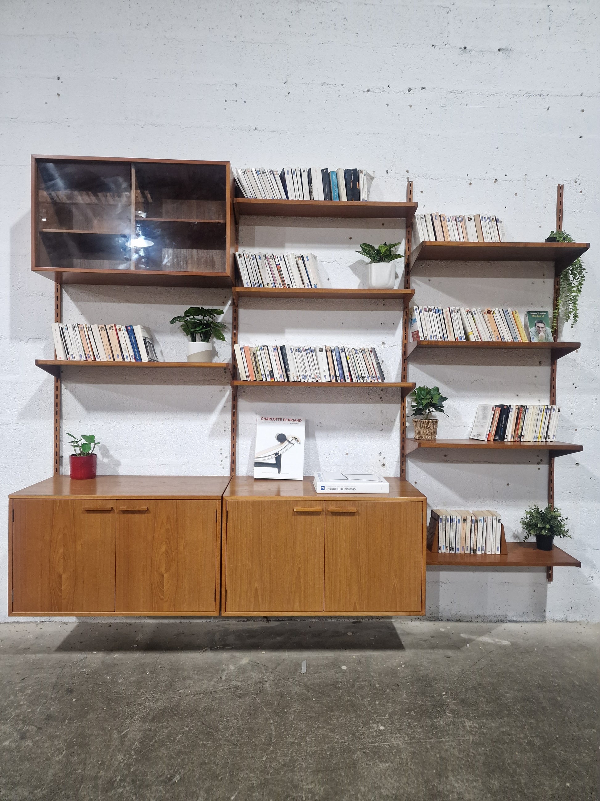 Bibliothèque scandinave en teck par Kai Kristiansen pour FM en très bon état général. Elle est entièrement modulable. Elle mesure 200cm de haut, 249cm de long et 47cm de profondeur. Elle se compose de :